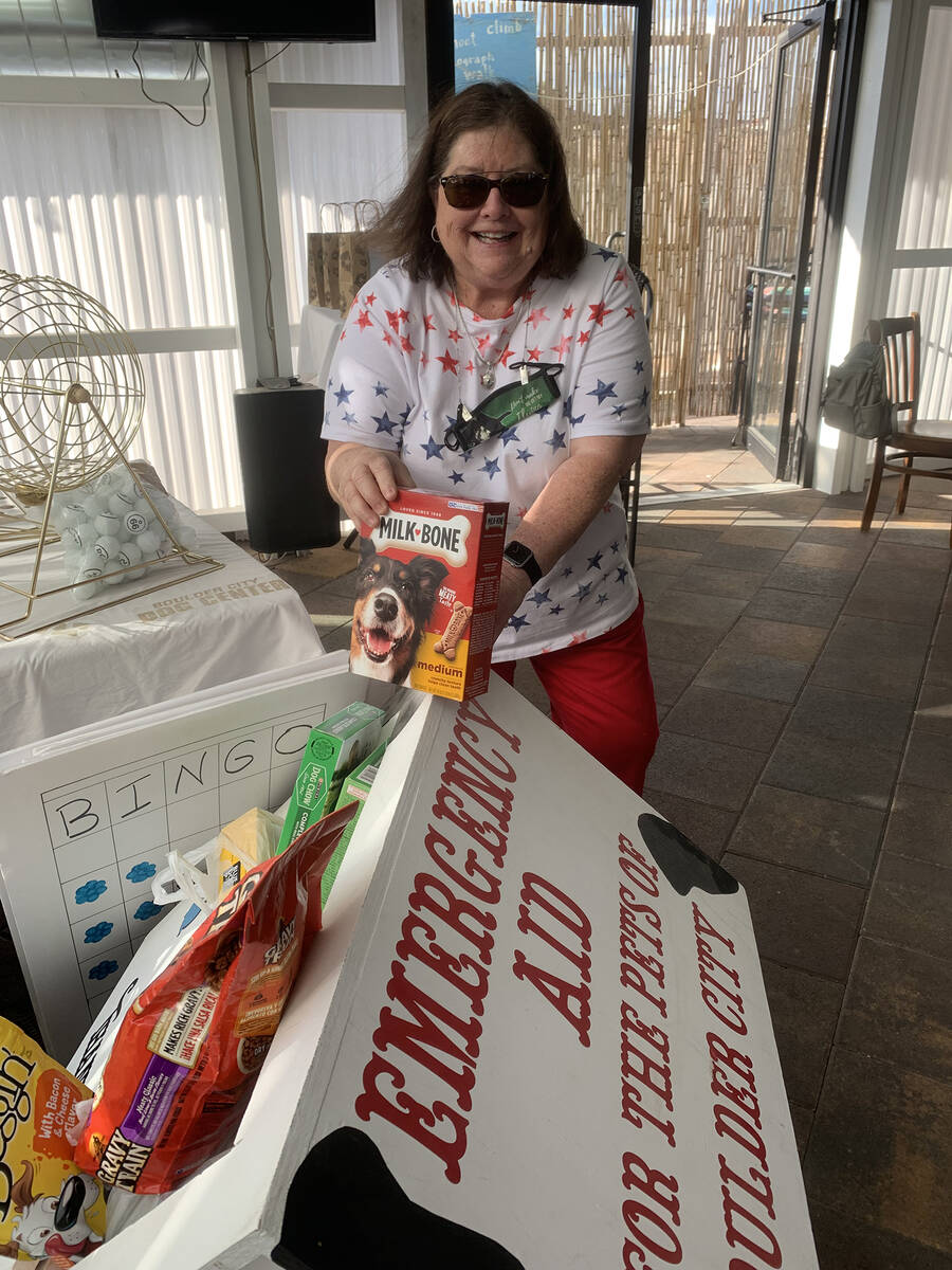 Maureen Avery brought in a donation for Emergency Aid of Boulder City during See Spot Run’s Bow Wow Bingo fundraiser June 2 at The Patio at Chilly Jilly’z.