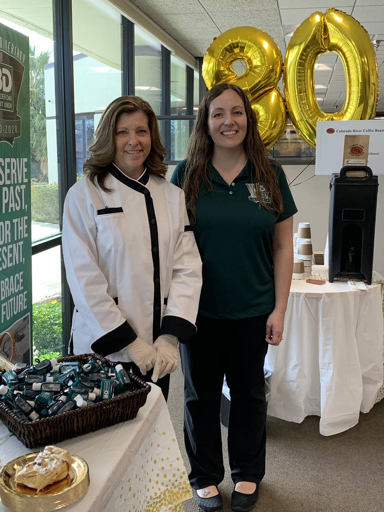 Chris Shannon, left, and Jamie Rzepecki of Boulder Dam Credit Union made sure there was plenty of coffee and cinnamon rolls for those attending Friday’s, March 6, Cops, K-9s and Coffee event at the financial institution.