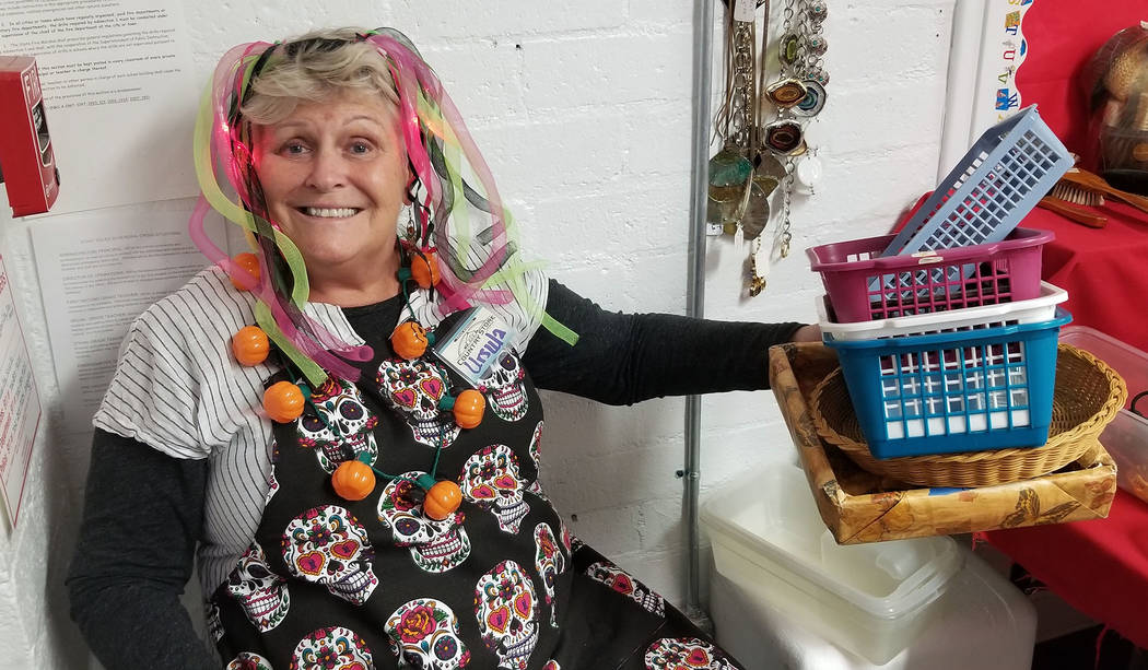 Volunteer Ursula Stelzner mans the baskets in the jewelry department at Grace Community Church’s annual Country Store fundraiser Friday, Oct. 18.