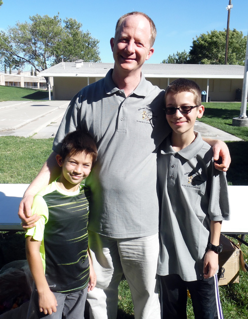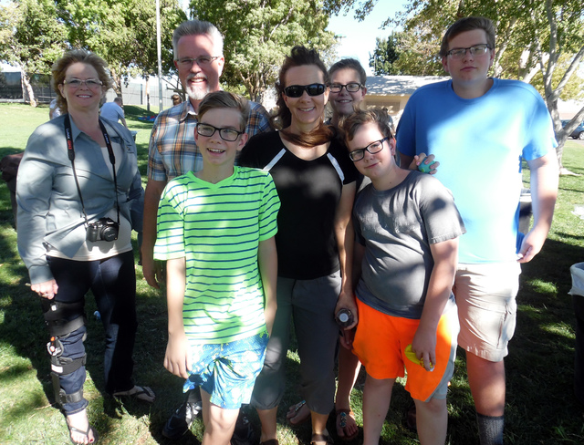 Benjamin, 10, from left, Curtis and Andrew Clothier, 12, visited from Lehi, Utah, to celebrate Dr. Eldon Clothier and his office’s 40 years in Boulder City at Advanced Dental Care’s thank you picnic Saturday in Broadbent Park.