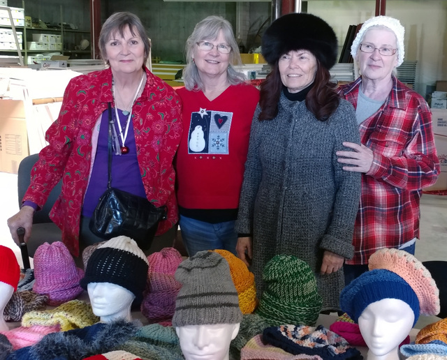Linda Kessler, from left, Kitty Ritenour, Jaimie Tibbs and Tisha Dennis, members of Boulder City’s Chatty Hatters, crocheted winter apparel, much of which they donated to the Angel Tree program.