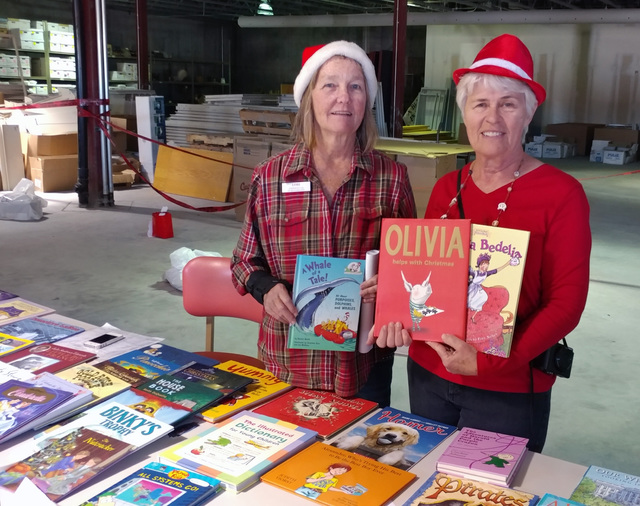 Lori McHugh, left, and Jan Barbour helped organize and oversee Emergency Aid of Boulder City’s Angel Tree program this year, which saw hundreds of gifts, including books donated by Spread the Word Nevada, reach families in need.