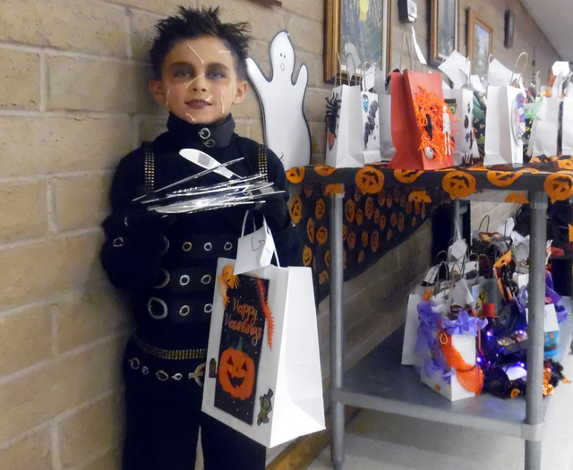 Donovan Knap, 6, dressed as Edward Scissor Hands, won first place in his division of the costume contest at the Family Fun Night Friday hosted by the Senior Center of Boulder City. Hunter Terry/Boulder City Review