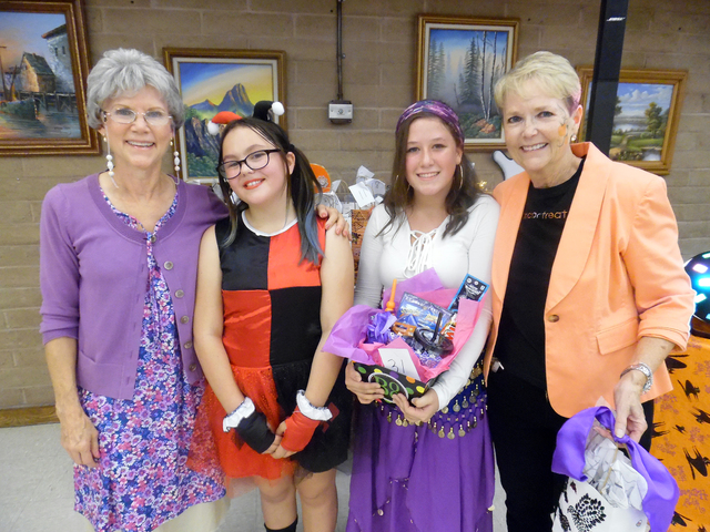 From left, Robin Rease, Monika Arroway, 12, Rory Leavitt, 13, and councilwoman Peggy Leavitt were the two winning teams of the adult/child dance contest Friday at Family Fun Night at the Senior Center of Boulder City.