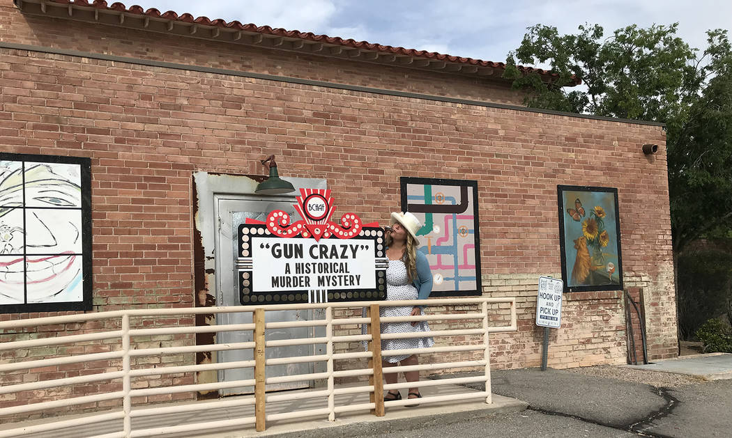 Sarah Harris, who portrayed Grace Nusser, prepares to enter a scene in Saturday’s, April 27, presentation of “Gun Crazy,” a murder mystery at the old water filtration plant on Railroad Avenue.