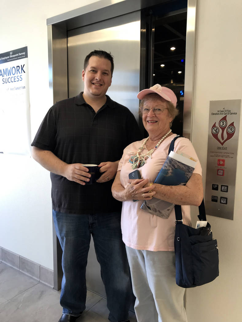 Michael Bernardo, chief of staff for the Bureau of Reclamation, visits with LueAnn Amburn of Boulder City in the bureau’s recently renovated building on Park Street during Historic Preservation Day on Saturday, May 11.