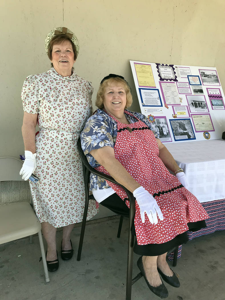 Sue Bell, left, and Kay Moore, members of the Silver State Chapter of Daughters of the American Revolution, donned attire from the 1930s as they presented information about Ida Browder, who owned and operated a cafe inside Boulder City’s first commercial building. Bell made her dress using an old Simplicity pattern.