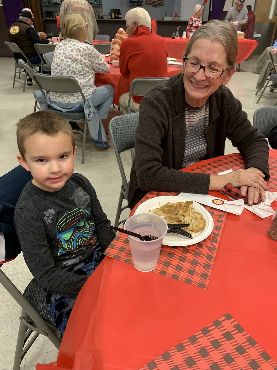 Gail Hutto brought her 4-year-old grandson Jon Hutto, to Pancakes and Pajamas on Saturday, Nov. 19, at the Boulder City Elks Lodge. The breakfast raised funds and accepted toy donations for the Angel Tree, Emergency Aid of Boulder City’s annual event to brighten the holidays for children and senior citizens in need.