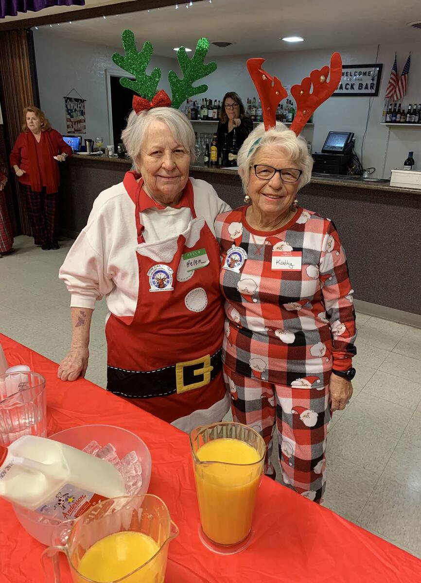 Helen Breeden, left, and Kathy Mills, donned their holiday antlers to help serve guests Saturday during the Pancakes and Pajamas event at the Boulder City Elks Lodge to benefit the Angel Tree, Emergency Aid of Boulder City’s annual holiday event for children and senior citizens in need.