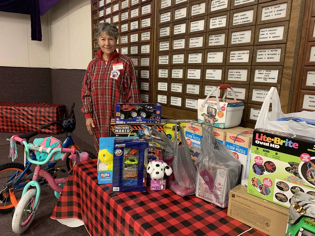 Pat Benke shows some of the toys that were donated Saturday, Nov. 19, during the Pancakes and Pajamas event at the Boulder City Elks Lodge to benefit the Angel Tree, Emergency Aid of Boulder City’s annual event to brighten the holidays for children and senior citizens in need.