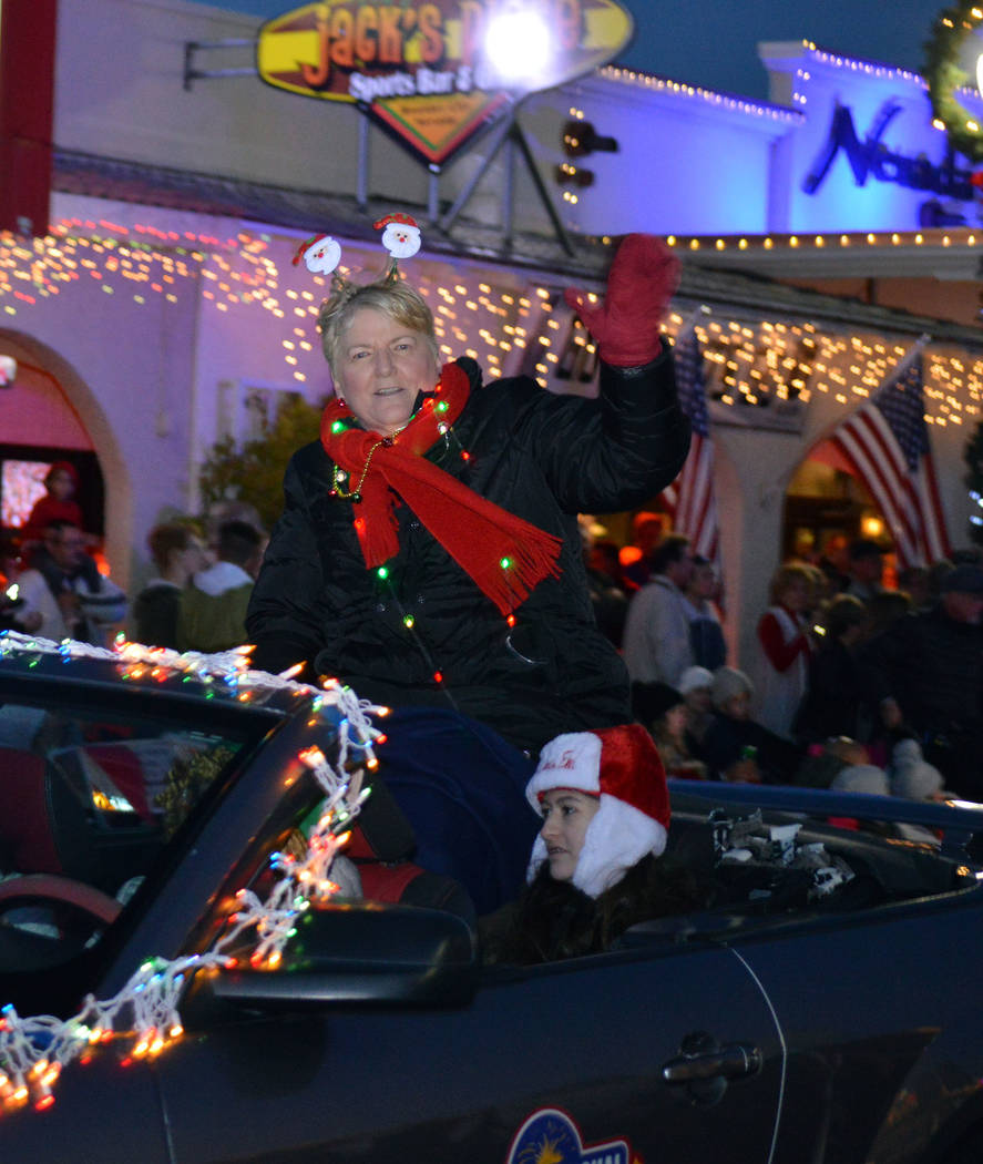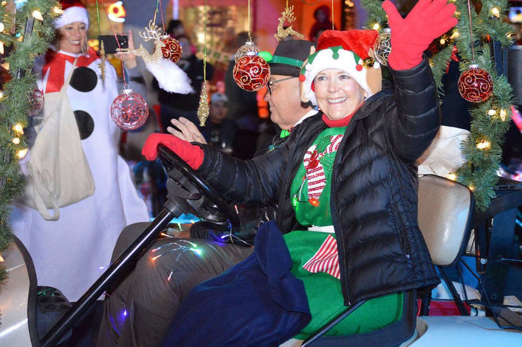 Boulder City Councilwoman Peggy Leavitt waives to the crowd during Santa’s Electric Night Parade on Dec. 1, in downtown Boulder City.