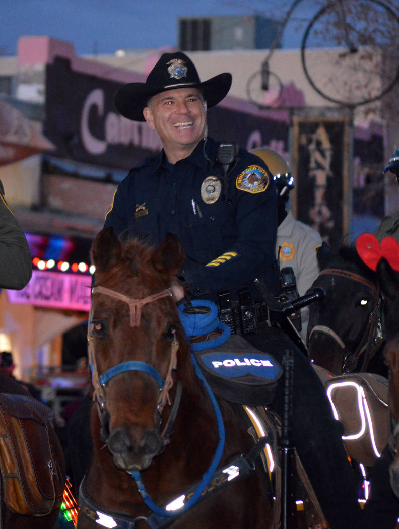 Boulder City Police Officer Scott Pastore and his horse, Odie, start off the 47th annual Santa’s Electric Night Parade in Boulder City on Saturday, Dec. 1.