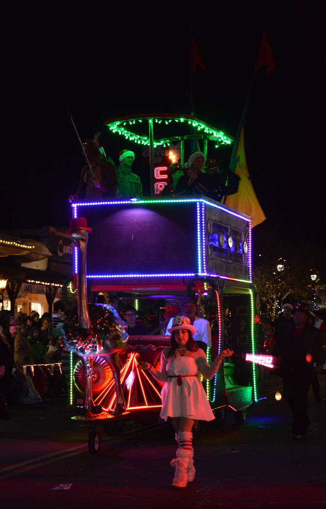 Dr. Spanky’s Musical Menagerie debuted a double-decker float on Saturday, Dec. 1, in Santa’s Electric Night Parade in Boulder City.