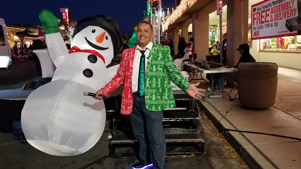 Mike Pacini, chairman of Santa’s Electric Night Parade, showcases his Christmas tie on Saturday, Dec. 1, during the parade.
