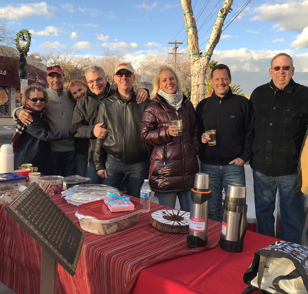 Originally from Germany, Switzerland and Belgium, a group of friends gathers each December for an outdoor party and to watch Santa’s Electric Night Parade in downtown Boulder City. Joining the festivities this year on Saturday, Dec. 1, 2018, were, from left, Sabine Barclay, Jose Rementeria, Carmen Kirchner, Harald Brandl, Patrick Lellieu, Sabine Schneider, Richard Schneider and Robert Barclay.
