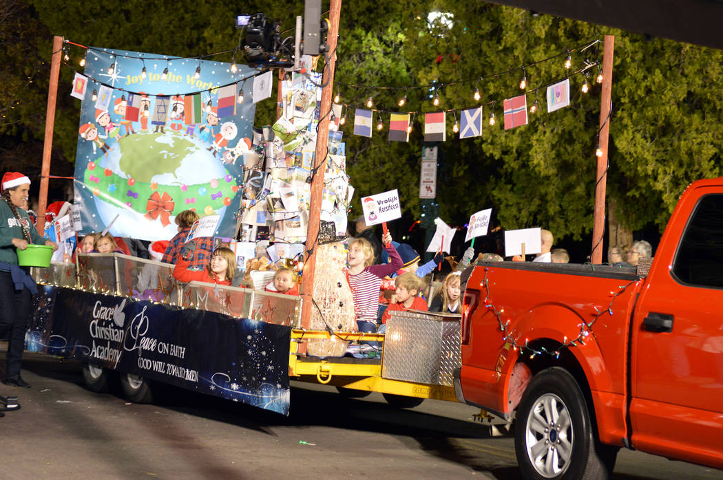 Grace Christian Academy showcases a “Christmas Around the World” float for Santa’s Electric Night Parade on Saturday, Dec. 2.