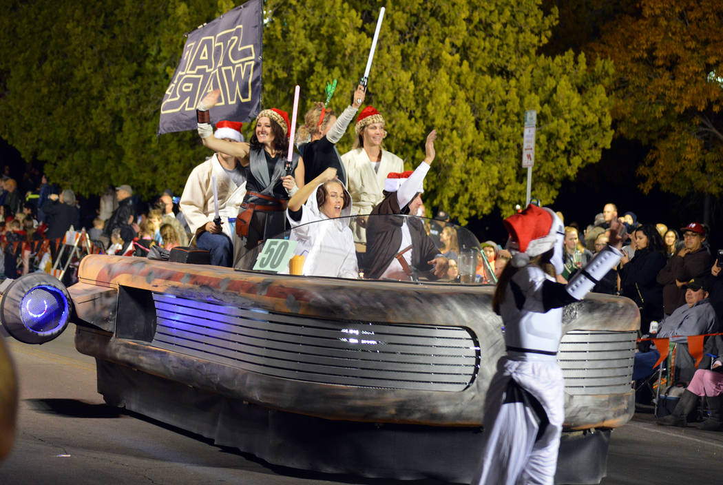 A “Star Wars” landspeeder takes time away from Tatooine to participate in Santa’s Electric Night Parade on Saturday, Dec. 2, in Boulder City.