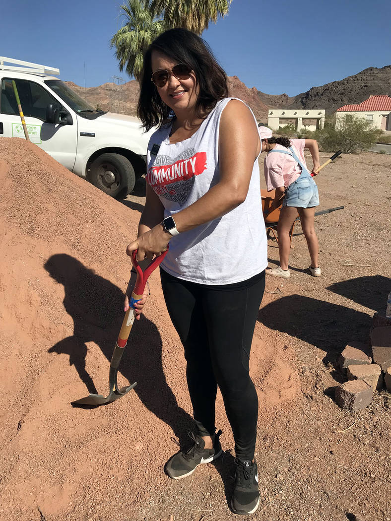 Christina Vela, executive director of St. Jude’s Ranch for Children, was on hand Saturday to help build a community garden.