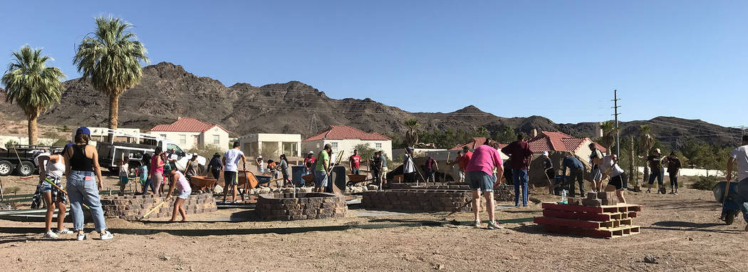 Brian Franklin, a senior therapeutic house director at St. Jude’s Ranch for Children, was among those helping build a community garden on the Boulder City campus Saturday. The garden will serve as a gathering spot and will teach children about growing food.