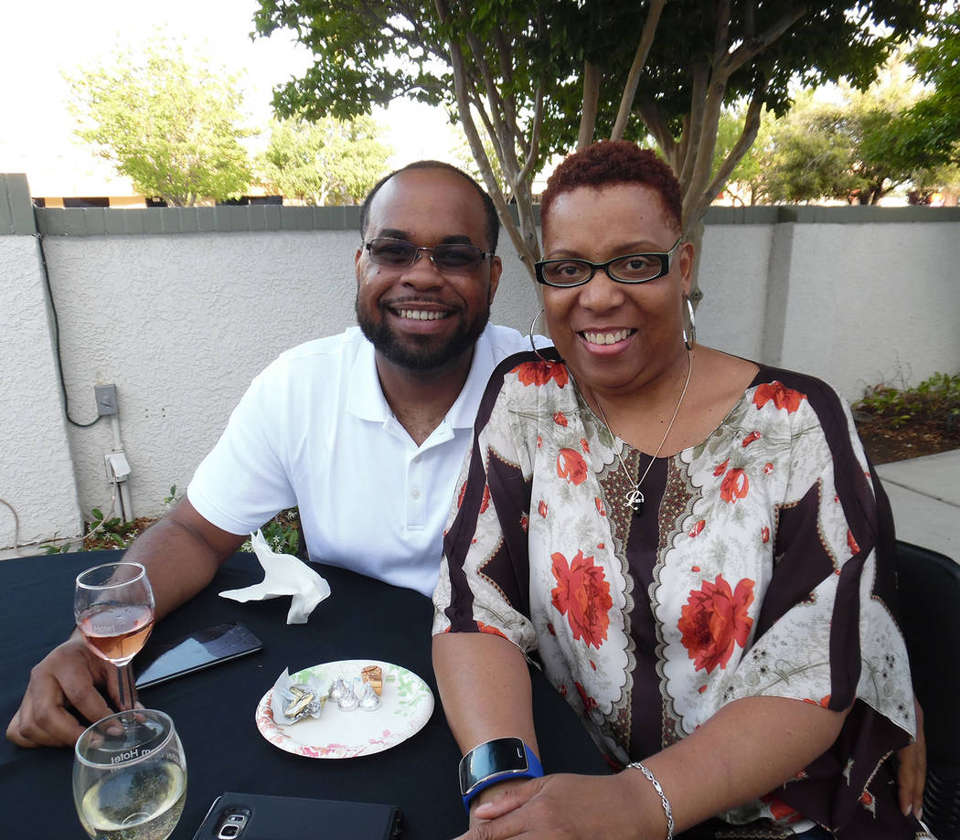 Dionte Gant and Shana Daniels, both of Henderson, traveled to Boulder City on Saturday to attend the chocolate and wine tasting and enjoy the musical entertainment provided by their friend Cathy Allen.
