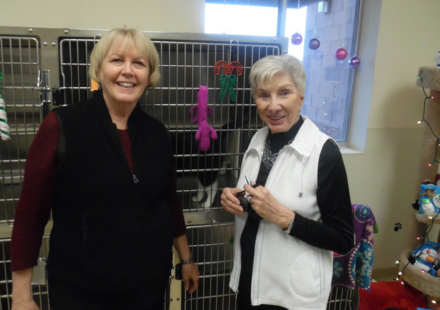 Margie Reumamn, left, from Las Vegas and Jo Clow of Boulder City are regulars on the American Association of University Women’s annual Home Tour. They said they look forward to seeing friends, decorations and beautiful homes, as well as some furry friends this year at the Boulder City Animal Shelter.