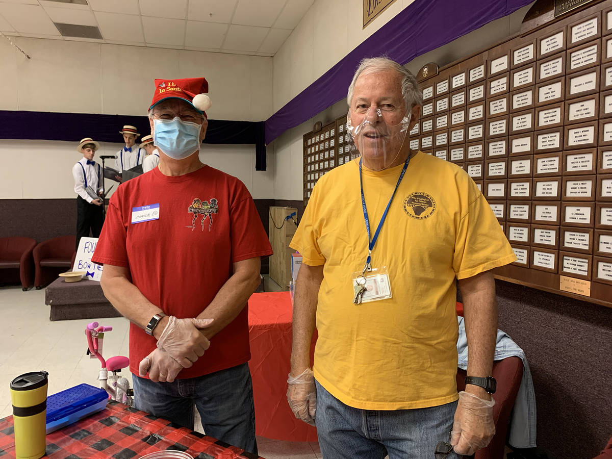 Chuck Barbour, left, and Jerry McHugh welcomed people to the Angel Tree pancake breakfast Saturday at the Boulder City Elks Lodge. Elks Lodge No. 1682 donated use of the room, all the food and $1,500 to the holiday program that provides gifts for needy children and senior citizens in the community.