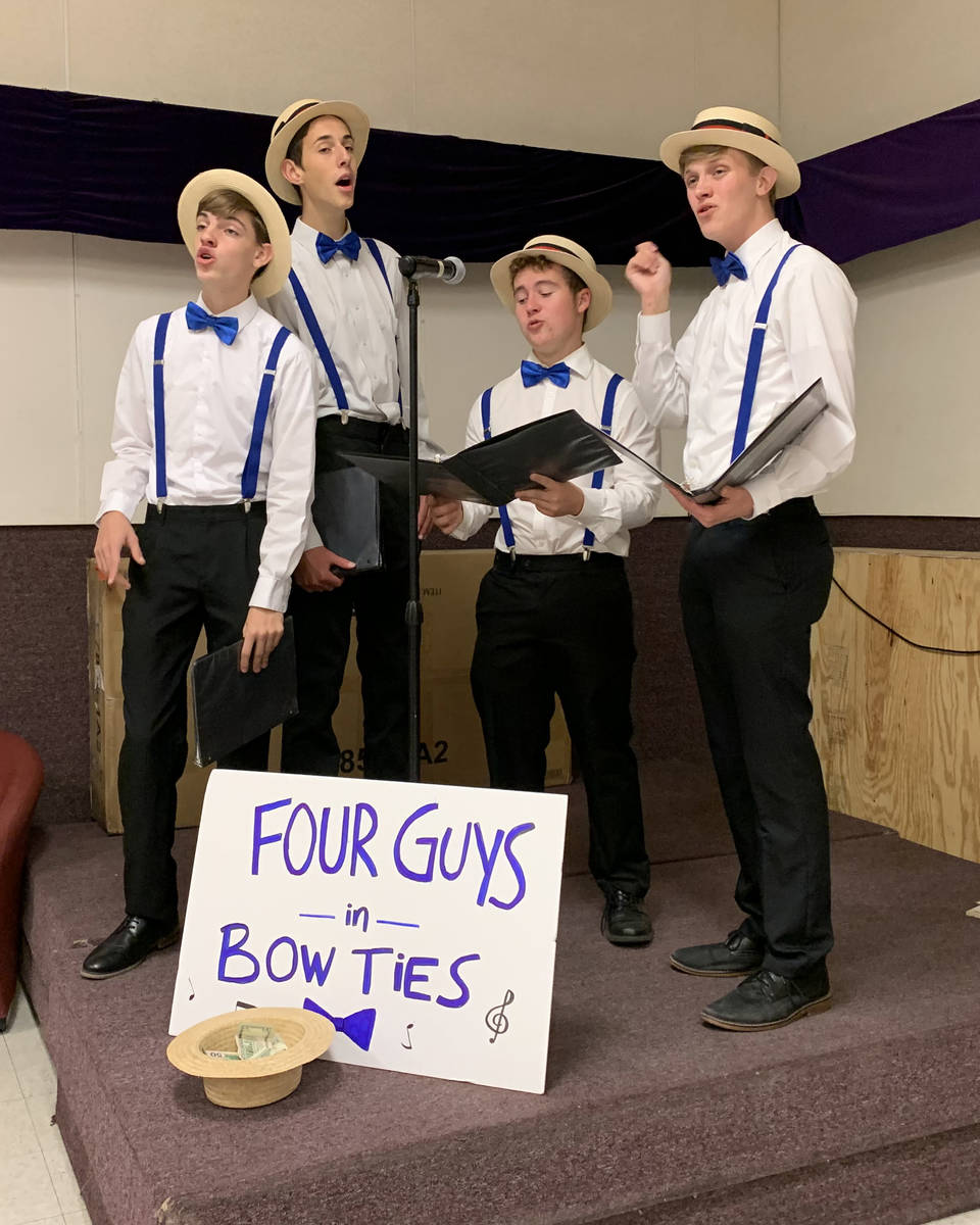 Four Guys in Bow Ties, a barbershop quartet from Basic High School, provided musical entertainment at the pancake breakfast Saturday at the Boulder City Elks Lodge to raise funds for the Angel Tree program presented by Emergency Aid of Boulder City.