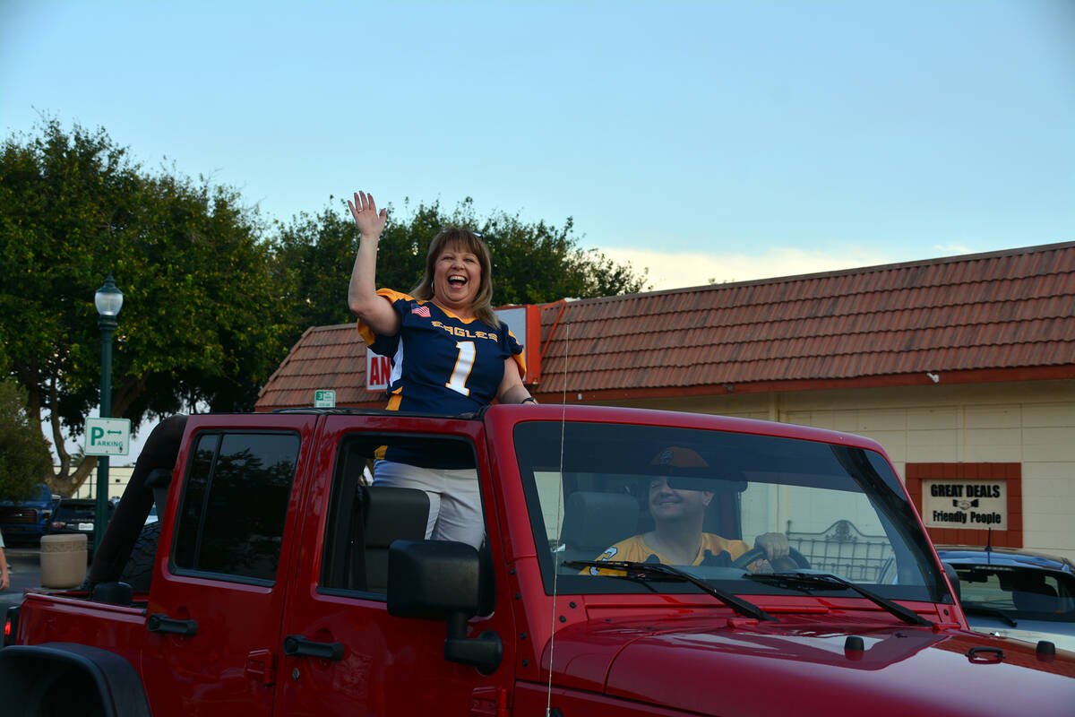 Boulder City High School Principal Amy Wagner waves to the crowd during the homecoming parade Sept. 23.