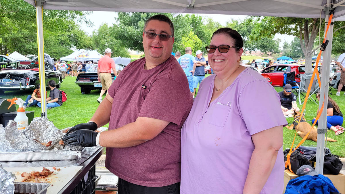 Mark and Jessica Knirk of Crazy Cockatoo Cookers prepare their brisket Saturday, May 27, for the Best Dam Barbecue Challenge in Boulder City.
