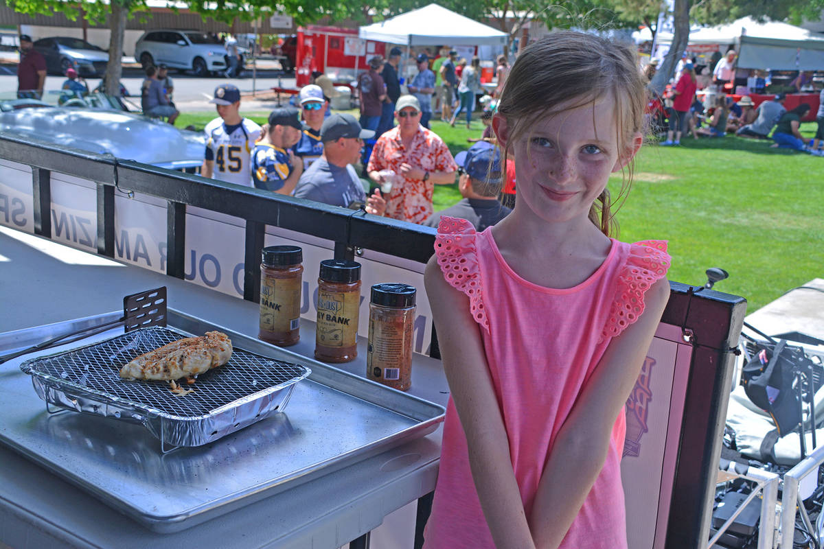 Six-year-old Harper King shows off the chicken she cooked Saturday, May 29, during the Kids Que at the 17th annual Best Dam Barbecue Challenge. She came in third in the 6- to 12-year-old category.