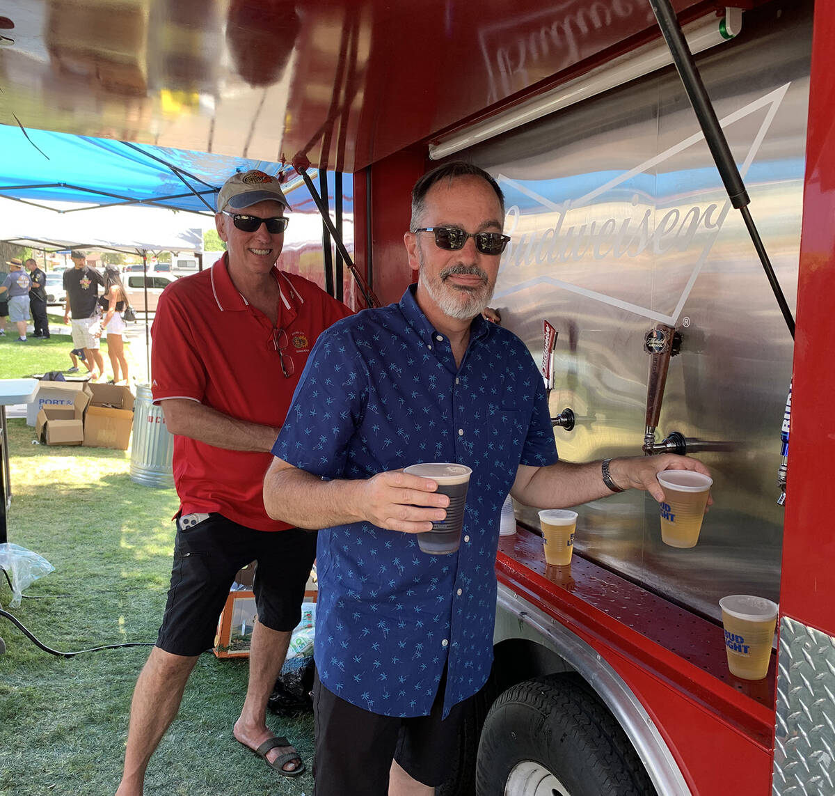 Dr. Robert Merrill, left, and Michael Mays of Boulder City Sunrise Rotary Club man the beer truck during the 18th annual Best Dam Barbecue Challenge on Saturday, May 28. The event is a fundraiser for the Rotary Club of Boulder City.