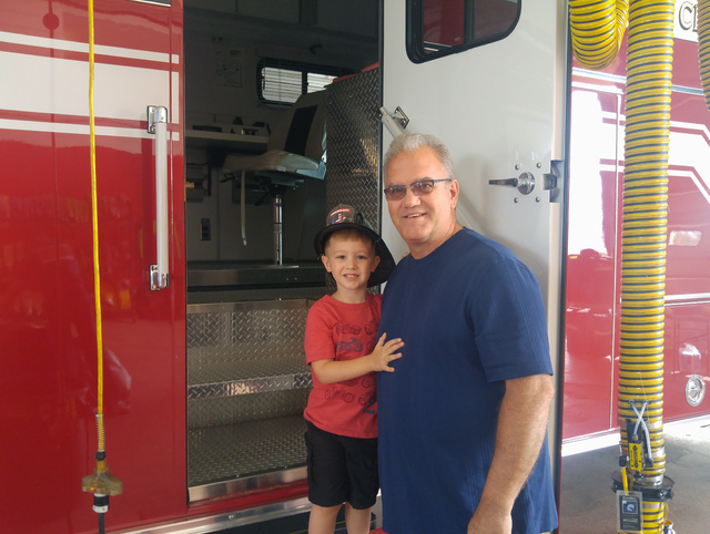 Rosalind Ripley and her 4-year-old daughter, Sienna, of Henderson enjoyed a tour of the fire department and the fire engines from Boulder City firefighter Josh Barrone during the annual firefighters’ open house and pancake breakfast on Saturday.