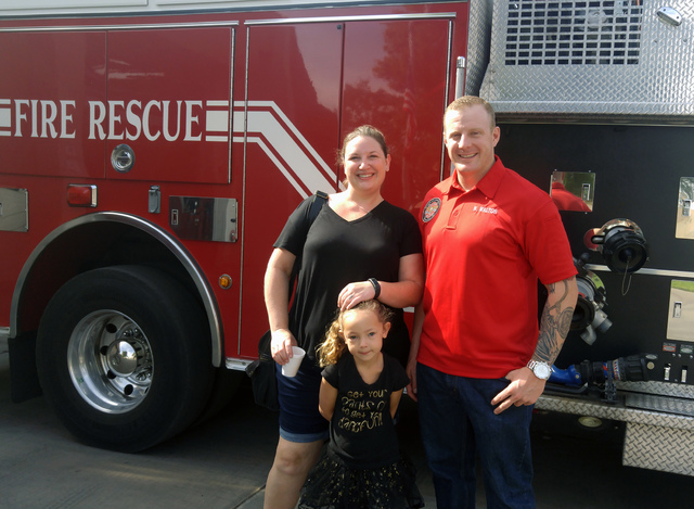 Rosalind Ripley and her 4-year-old daughter, Sienna, of Henderson enjoyed a tour of the fire department and the fire engines from Boulder City Firefighter Josh Barrone during the annual firefighters’ open house and pancake breakfast Saturday.