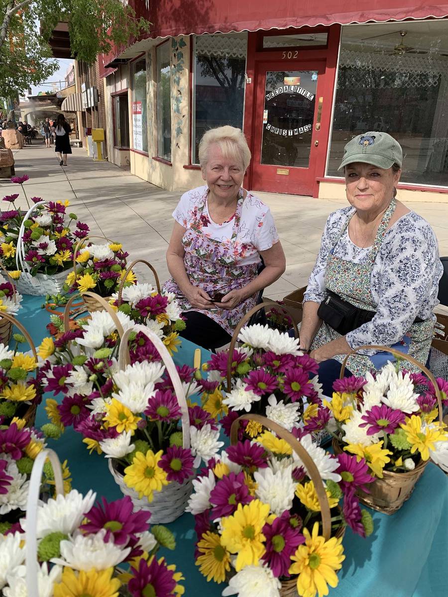 Carolyn Fowler, left, and Kathie Robinson sold baskets of May Day flowers and tickets for the garden tour at the corner of Nevada Way and Arizona Street on Saturday, May 1. Fowler taught floral design and was head of the department at the College of Southern Nevada for 15 years before retiring.