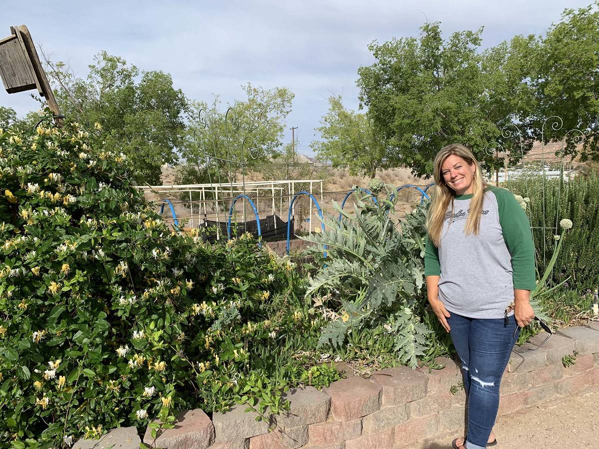 Wendy Wilson, assistant manager of Garden Farms of Nevada and a Boulder City resident, answered questions and worked on her space at the community gardens on Railroad Avenue during Saturday’s first garden tour.