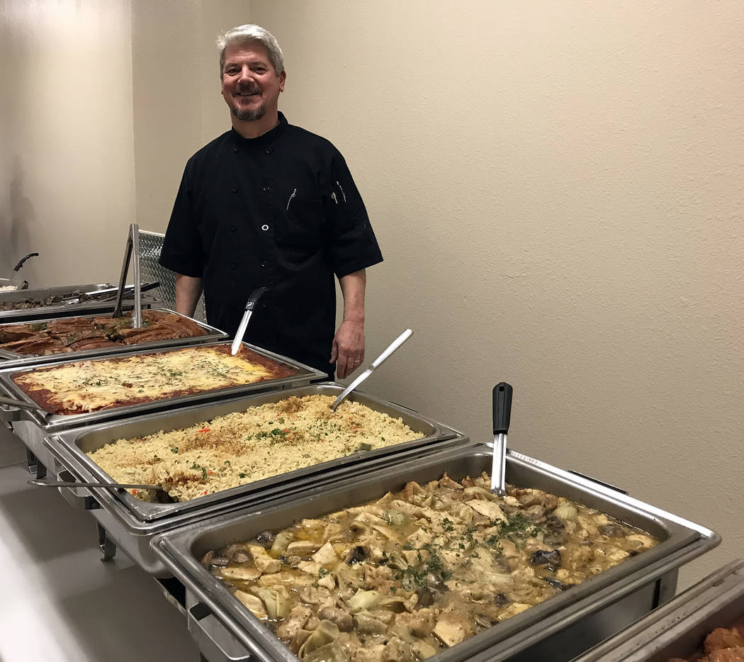 Evan Lathouris of Evan’s Old Town Grille makes sure everything is in place for the Boulder Dam Credit Union’s annual membership meeting and dinner. He has been catering the event for numerous years.