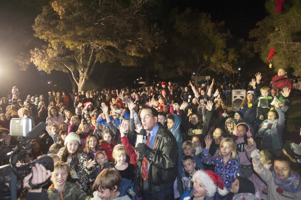 Seen on Scene: At the Christmas tree lighting Boulder City Review 10 years ago Santa, Mrs. Claus and Jingle Cat were joined by singers and KSNV channel 3 weatherman Kevin Janison during the annual Christmas tree lighting ceremony held Friday night in Frank Crowe Park.