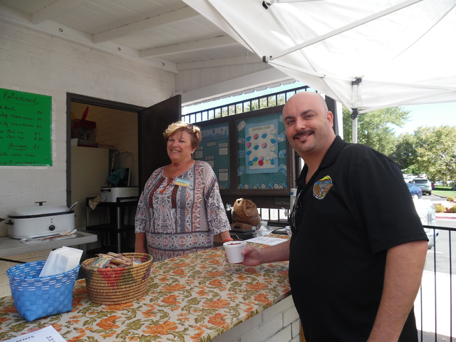Marty Oakley serves a bowl of chili to Keith Dallura on Friday during the 69th annual Country Store presented by Grace Community Church. The chili is a staple at the fundraiser for the church and its outreach events to the community.