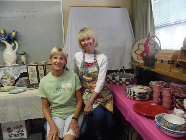 Toni Epler, left, and Jackie Neal work Friday in the boutique area of Grace Community Church’s annual Country Store. This is Epler’s third year helping at the event, while Neal said she has been volunteering for about 10 years.