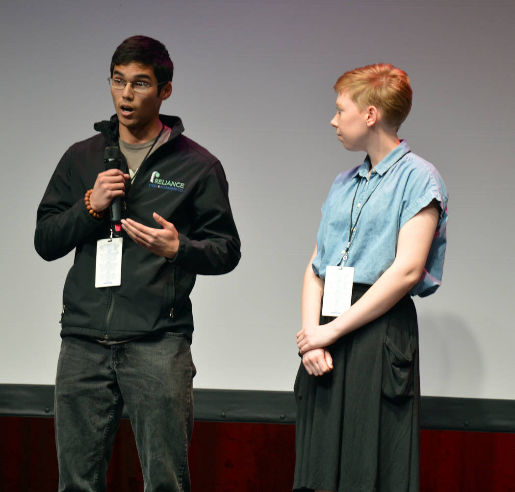 Joshua Cavalier, left, answers a question about “Castle on a Cloud,” a film he made with Celeste Erlander. They created the film while students at New York University’s Tisch School of the Arts, and this was the first time they had a film screened.