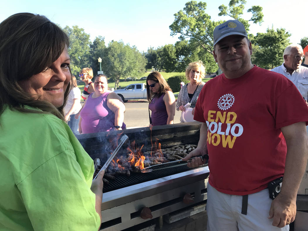 Rotarians Chris Romero, left, and John Chase cooked sausages for the pancake breakfast served in Bicentennial Park by the Rotary Club of Boulder City to start the Damboree celebration.