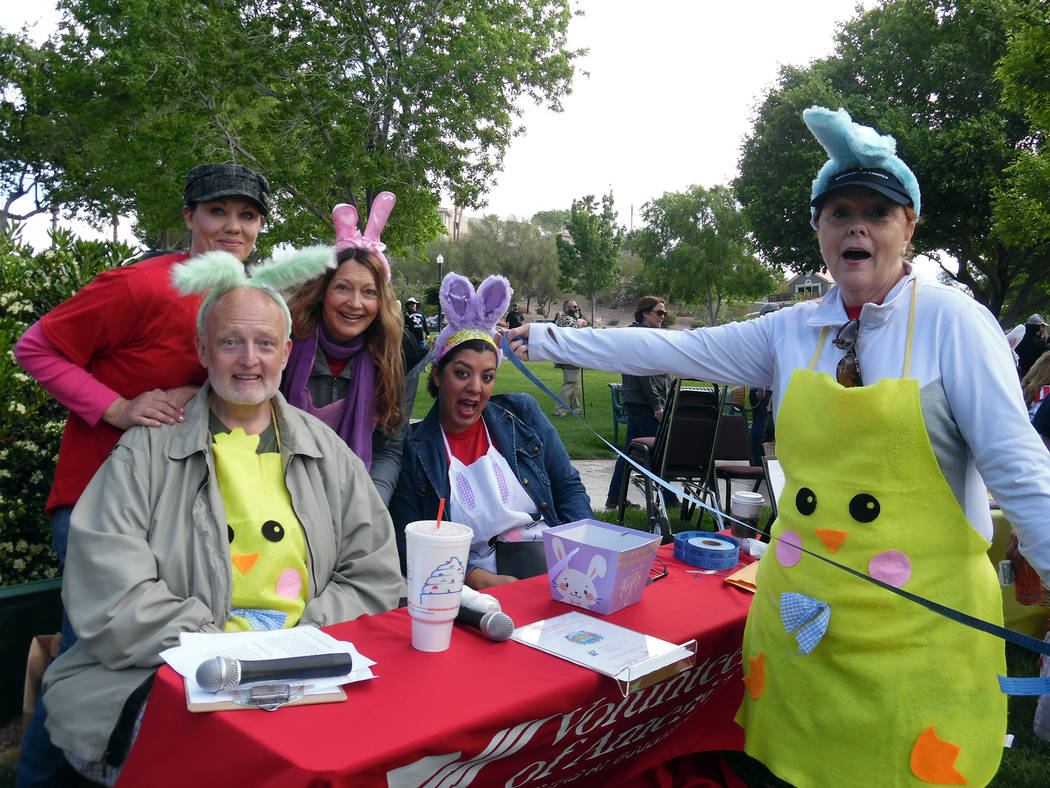 Staff from The Homestead at Boulder City, from left, Tanya Vece, Mike Fox, Debra Aspara, Magali Lopez and Edie Sanchez got into the spirit of the Saturday’s Easter egg hunt, the first year the nonprofit ran the 63rd annual event.