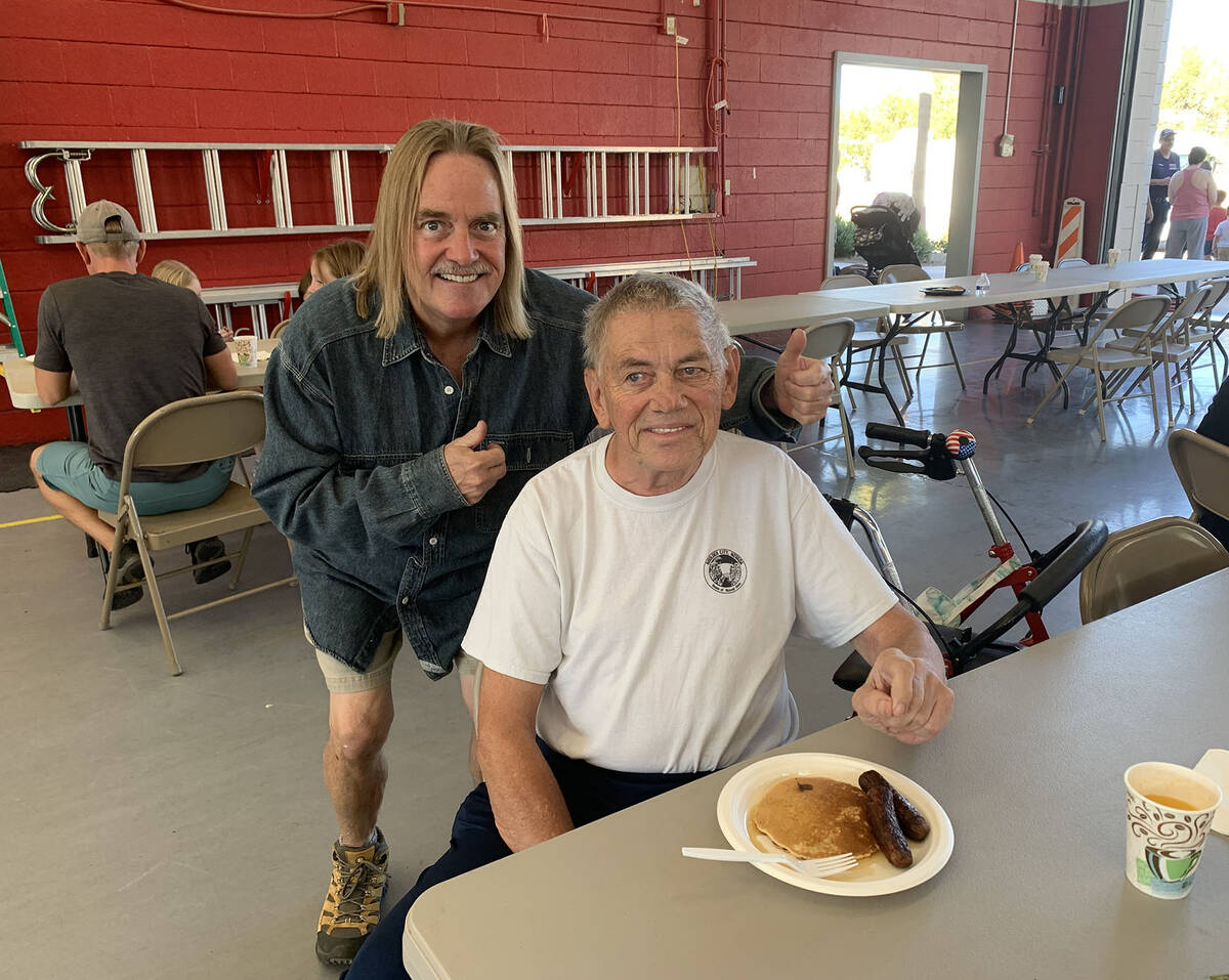 Among those attending Saturday’s pancake breakfast and open house at the Boulder City Fire Department were Greg Davis, left, and Casimir Kusak.