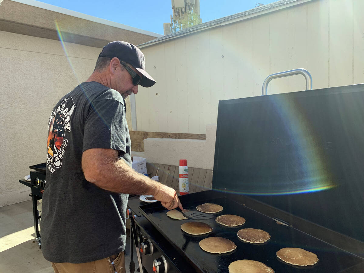 Ron Bleck, father of a Boulder City firefighter, manned the grill making pancakes for the department’s annual breakfast and open house on Saturday, Oct. 8, at the station at 1101 Elm St.