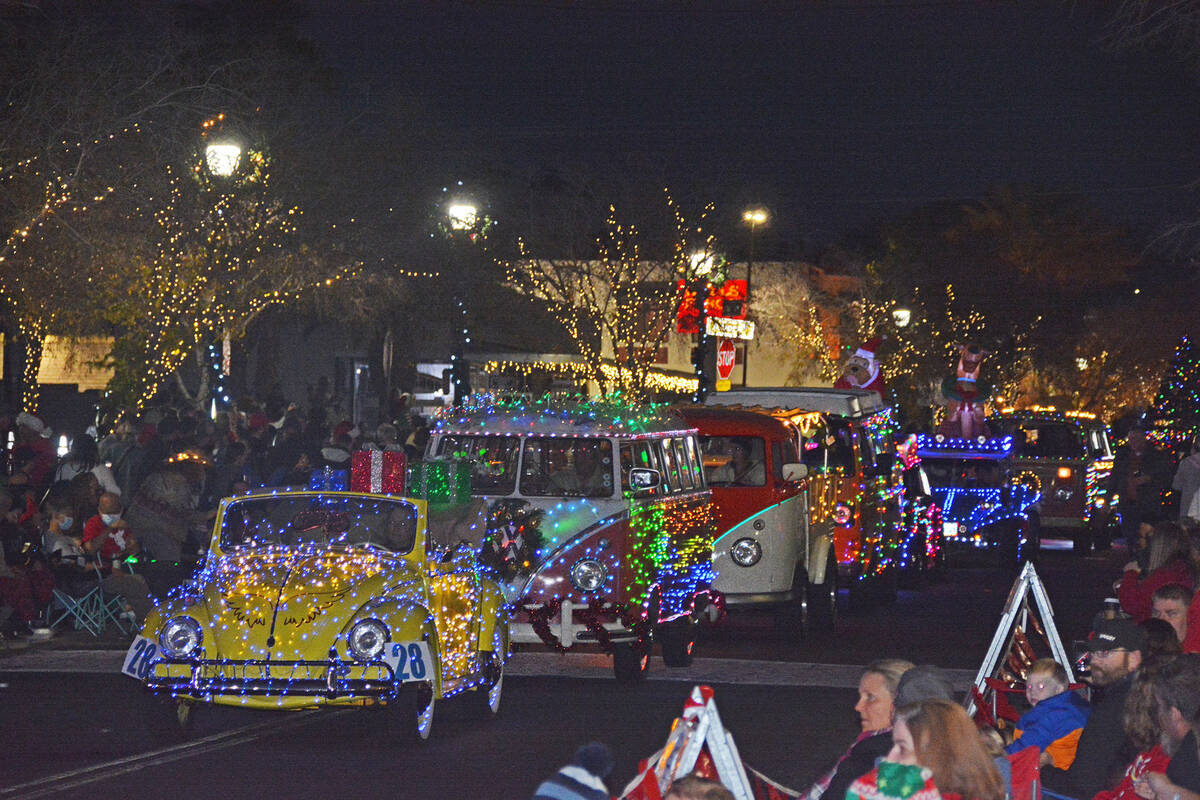 Santa’s Electric Night Parade featured many different lights, floats and vehicles including these Volkswagens. The annual parade was Saturday, Dec. 4, in downtown Boulder City.