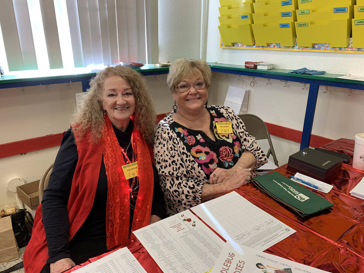 Linda Scott, left, and Sheri Vanoosten volunteer at Boulder City Community Club’s annual Doodlebug Craft Bazaar on Saturday at the city’s recreation center.