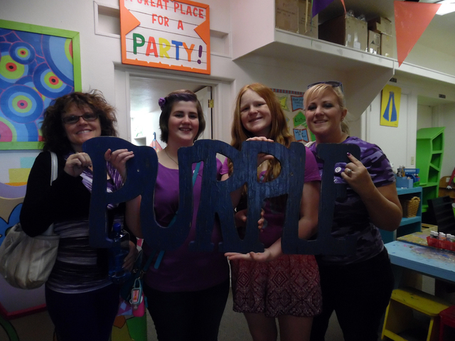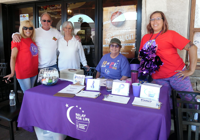 Several teams were racing through Boulder City on Saturday as they gathered an assortment of goodies while participating in the Relay For Life of Boulder City’s Paint the Town Purple scavenger hunt.