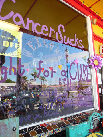 In addition to visiting local businesses to gather items such as business cards, coupons and various gifts, the team members tied purple ribbons on various objects to help raise awareness of the April 29-30 Relay For Life, which raises funds to provide support services for those fighting cancer, their caregivers and survivors.