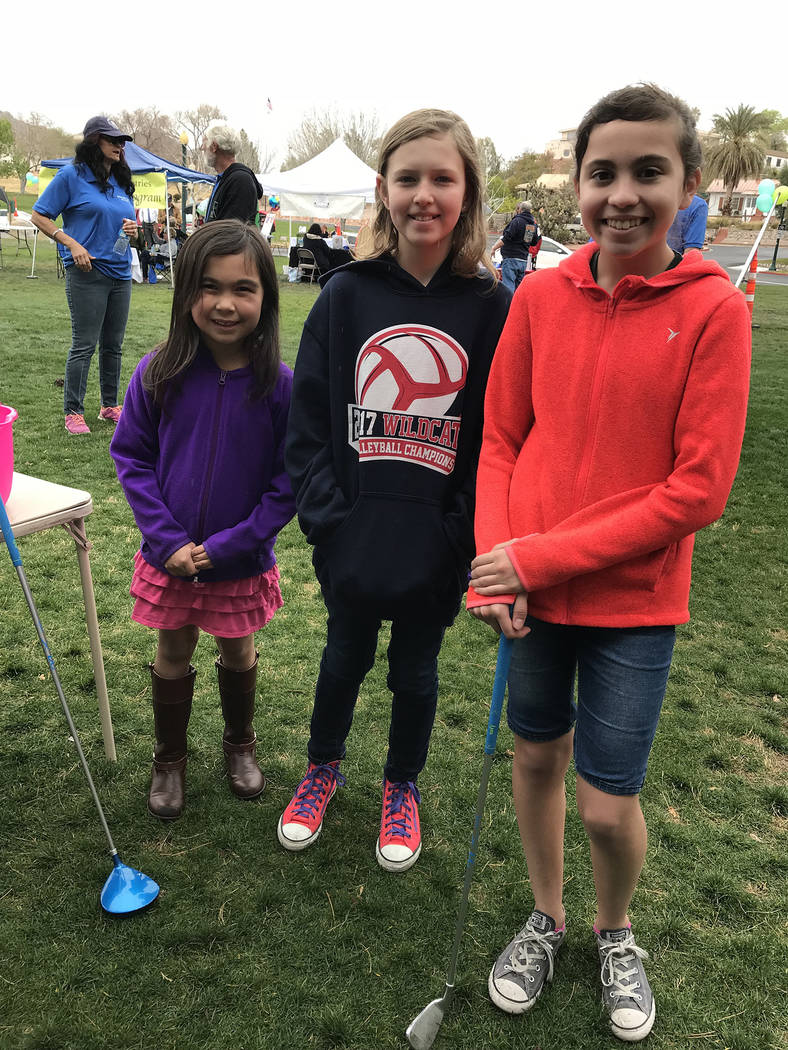 A kids zone was added to the festivities at the Rock, Roll & Stroll, held Saturday to raise funds for the Senior Center of Boulder City. Sisters, from left, Isa, Sofia and Olivia Hammond tried out the mini golf attraction.