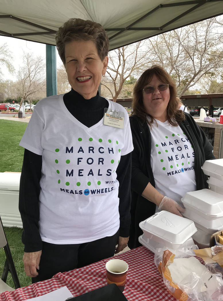 Joyce Lewis, left, vice president of the Senior Center of Boulder City’s board of directors, helps Melinda Reddin, kitchen manager at the center, sell lunches at the Rock, Roll &Stroll. The event raised approximately $22,000 for the Meals on Wheels program and repairs at the facility.